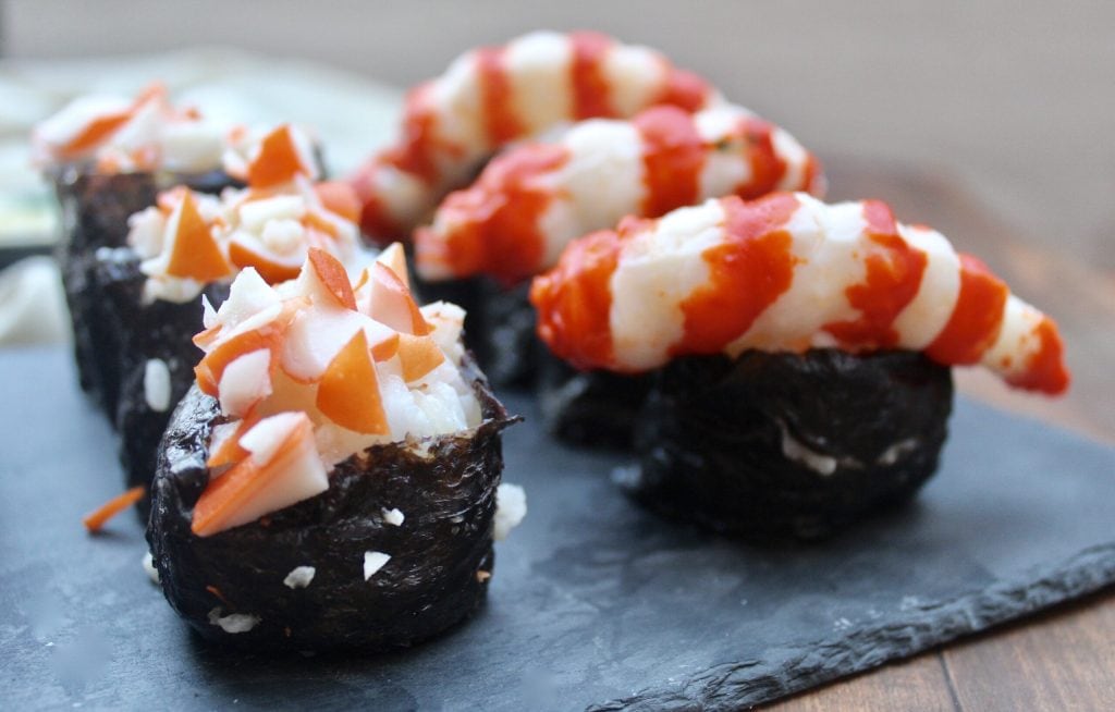 For the crab meat and shrimp gunkan: