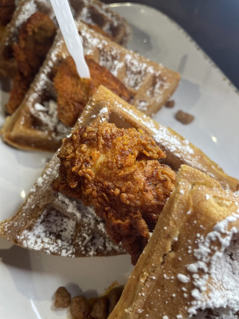 The waffle served with fried chicken (Chicken & Waffles) and the sweet breakfast waffle are very similar in base, but there are some key differences: