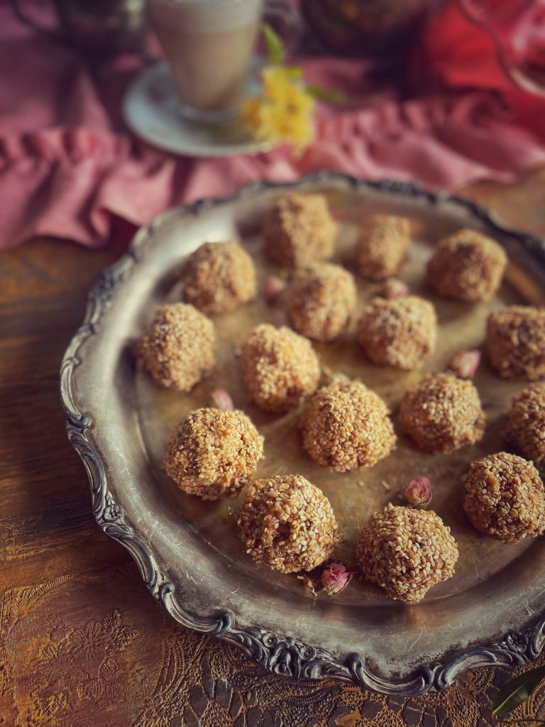Finishing: Roll each ball in toasted sesame seeds until completely coated.