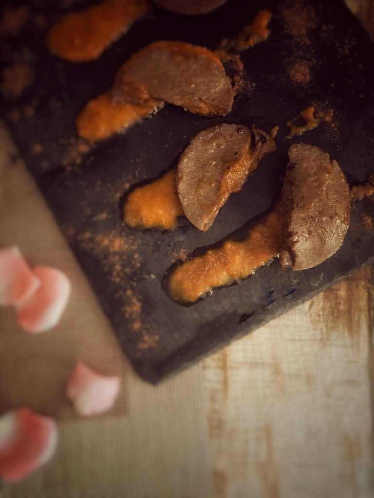 During the broadcast, I prepared them with buckwheat flour, for a gluten-free version, which is why they look so dark.