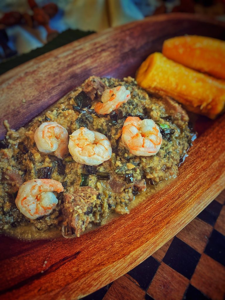 Ndolé is a dish from Cameroon made from a vegetable plant called Ndolé with therapeutic virtues, whose leaves are consumed while still green.