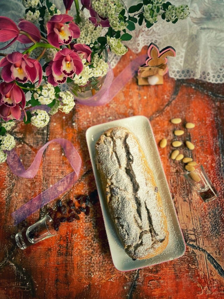 It is also a leavened bread rich in dried fruits and spices.