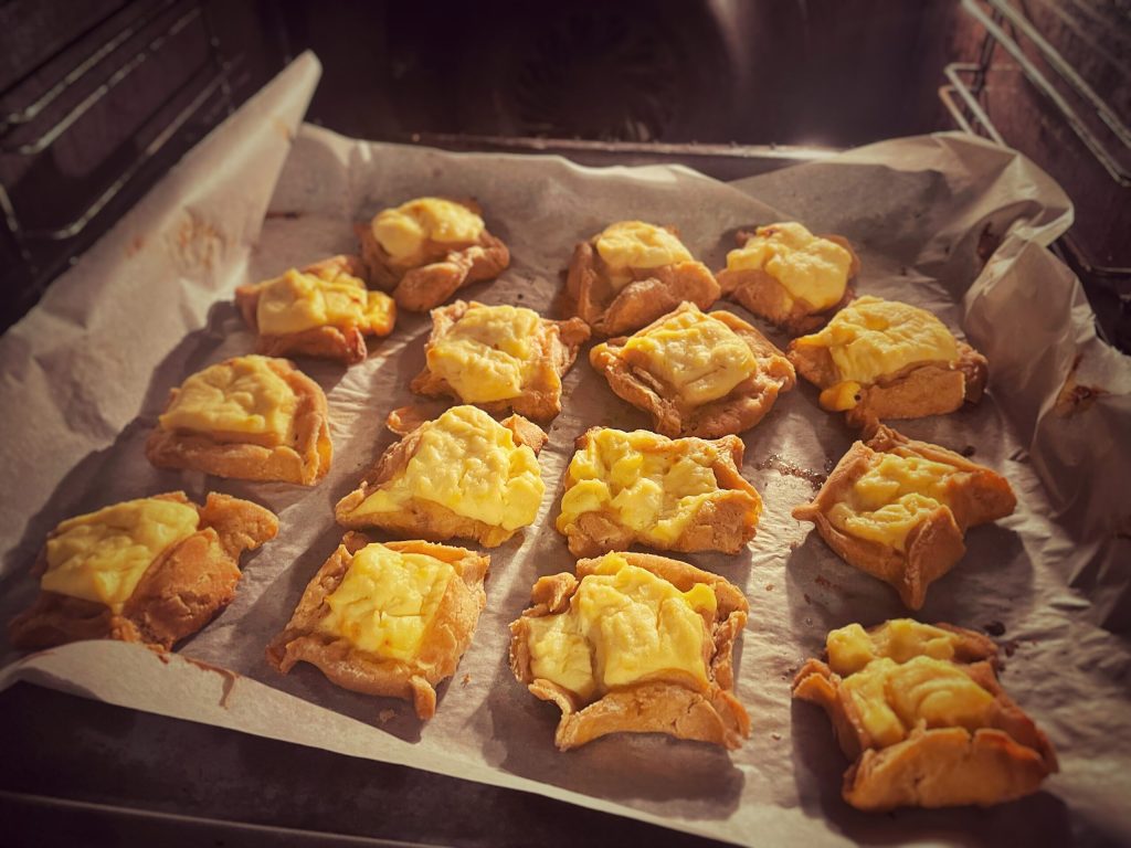Arrange the pardulas on a baking sheet lined with parchment paper.