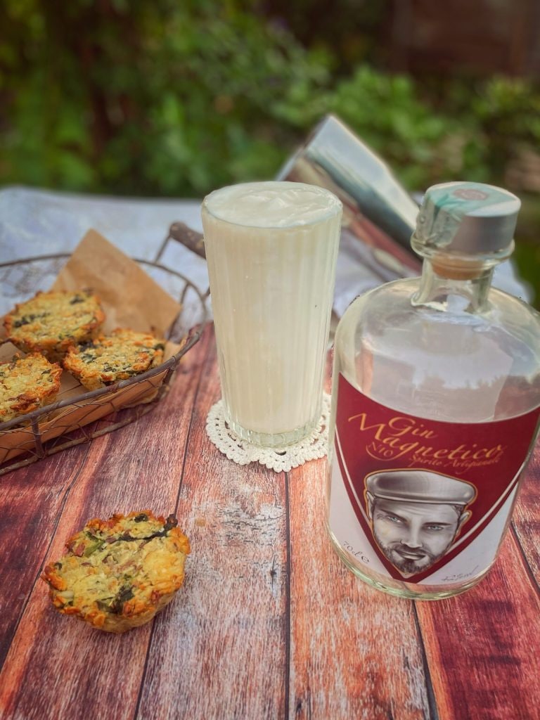 I paired it with savory muffins made with oats, spinach, and bacon, in pure southern United States style, and I prepared it with Magnetico Gin that you can purchase on the site www.myspirits.it with the discount code ⭐️VIAGGIANDO10⭐️
