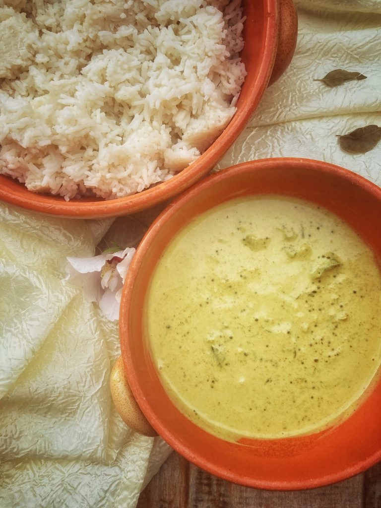 The white curries contain coconut milk, are more delicate and liquid.