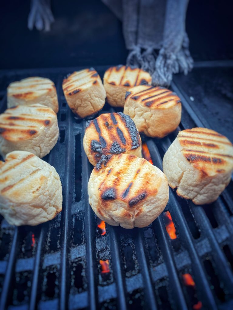 These are bread dough balls cooked on a grill, to be consumed piping hot and just taken off the grill.