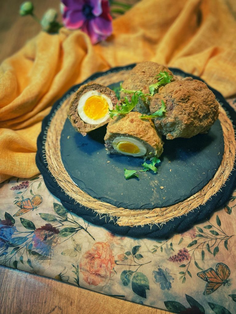 Crunchy on the outside, soft on the inside: Scotch Eggs are an iconic dish of British tradition, often served in pubs, at picnics, or during Sunday lunches.