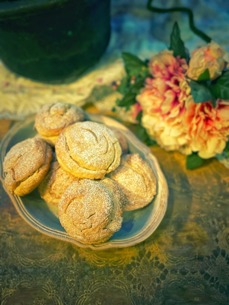 Conchas: are round and characterized by a shell-like topping (hence the name), made with sweet dough decorated by hand with lines resembling a shell.