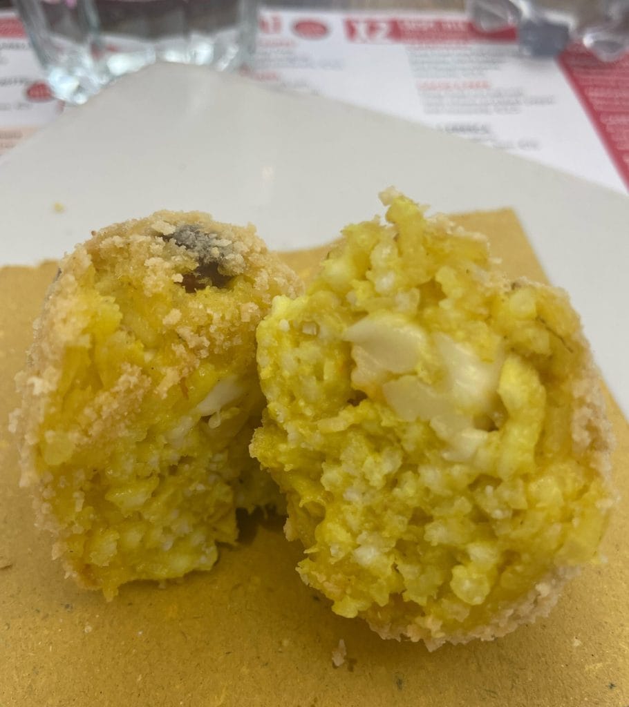 The term “supplì” derives from the French “surprise”, referring to the surprise of the melted mozzarella hidden inside.