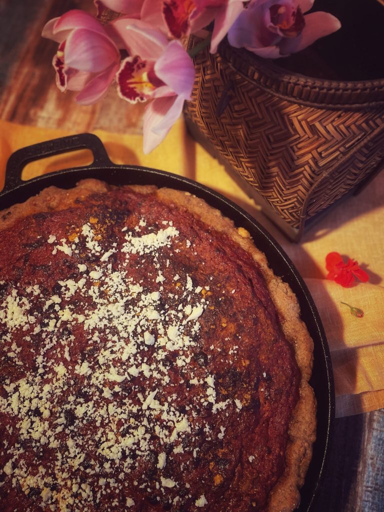 In today’s recipe for a 16-inch cast-iron pan, I introduced some personal changes that diverge from the traditional American preparation to suit specific dietary needs and flavor preferences. In particular: