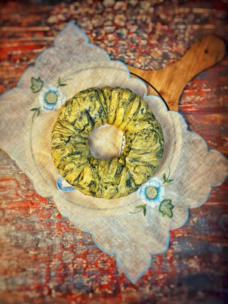 Add to the flour the sourdough, the milk roux, salt, egg, cream, milk, and spirulina.