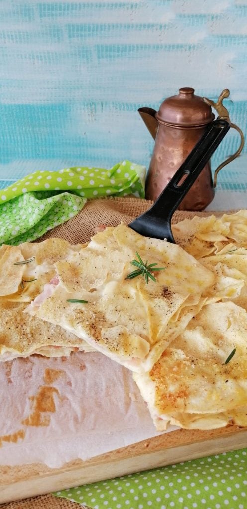 Riquísima y espectacular esta receta de preparación sencilla y rápida, basta con superponer dos hojas de pan carasau con mucho queso en el medio. Aquí está lista la falsa focaccia de stracchino y carasau. Una receta ingeniosa similar a la Focaccia de Recco, pero súper fácil y rápida. El pan Carasau es el típico pan sardo, finísimo y crujiente, se realiza con harina, agua, levadura y sal.