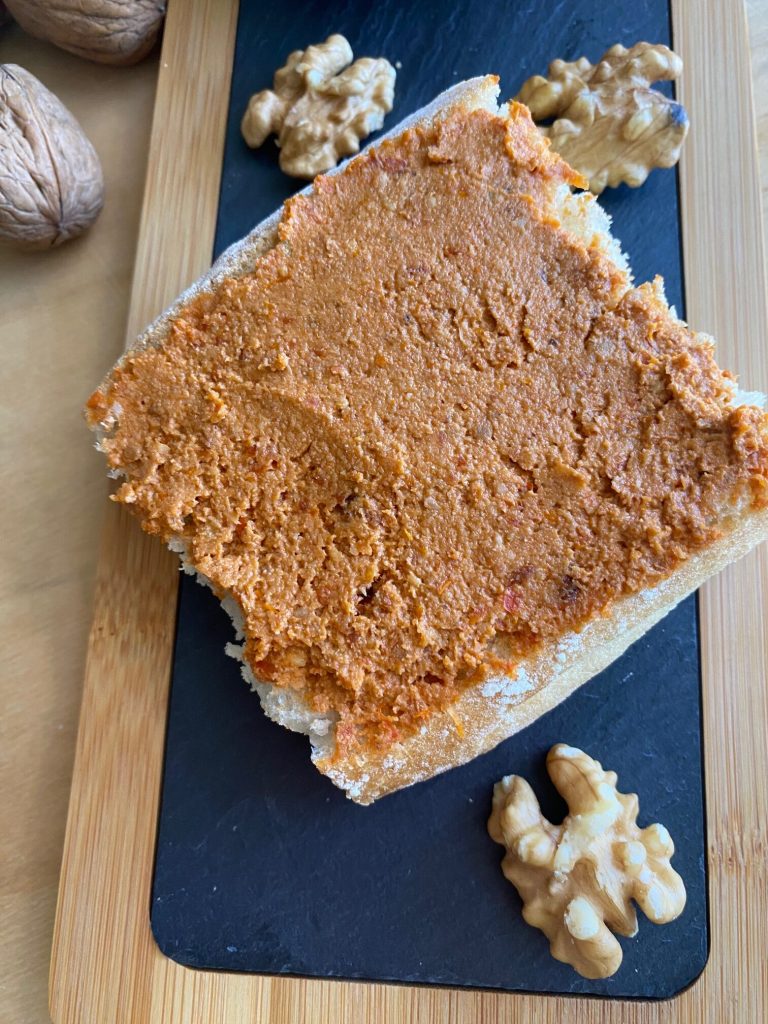 Bruschetas con pesto rojo y nueces, una de mis recetas listas en cinco minutos, sin complicaciones.
