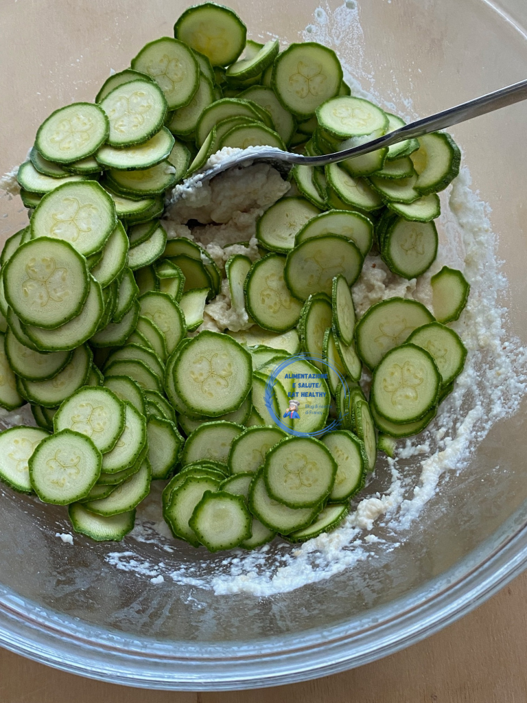 • Añadir los calabacines cortados en rodajas finas con la mandolina o con un cuchillo.