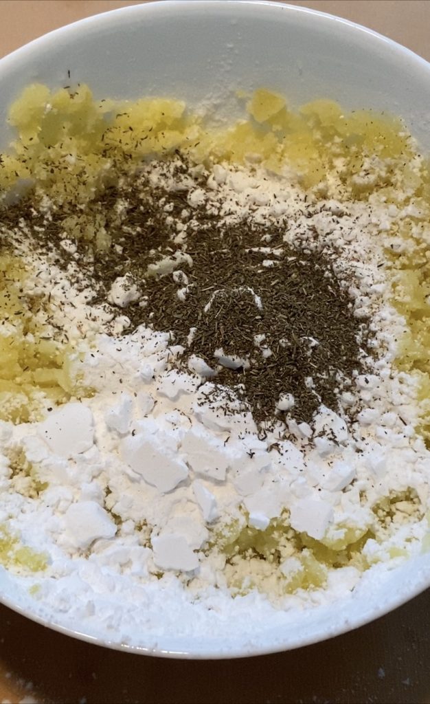 Ajustar de sal, añadir la fécula de patata y el tomillo