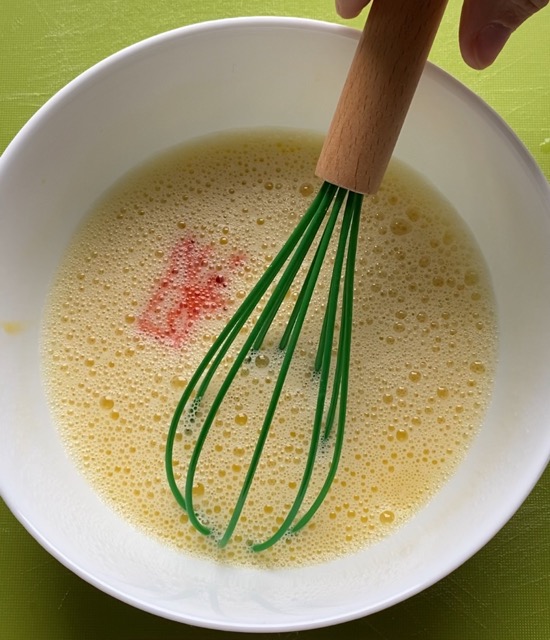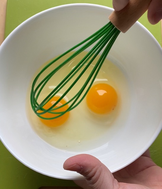 Batir dos huevos con la ayuda de un batidor.