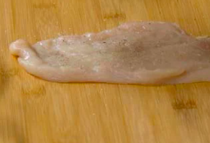 Para prepararlos, empieza golpeando las lonchas de pollo hasta que queden finas y pimenta si lo deseas.
