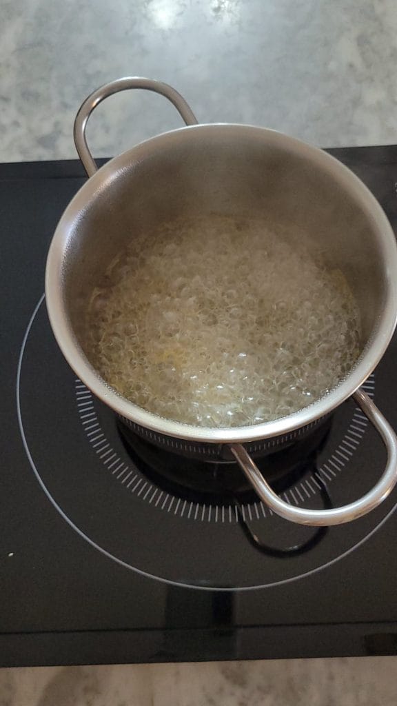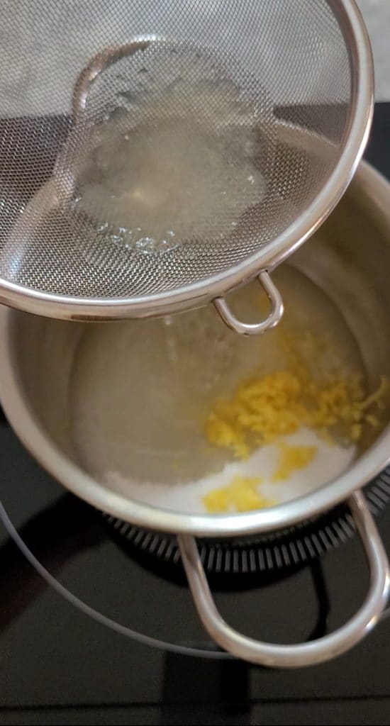 • Llevad a ebullición, mezclando con el batidor. Apagad el fuego y dejad enfriar el jarabe