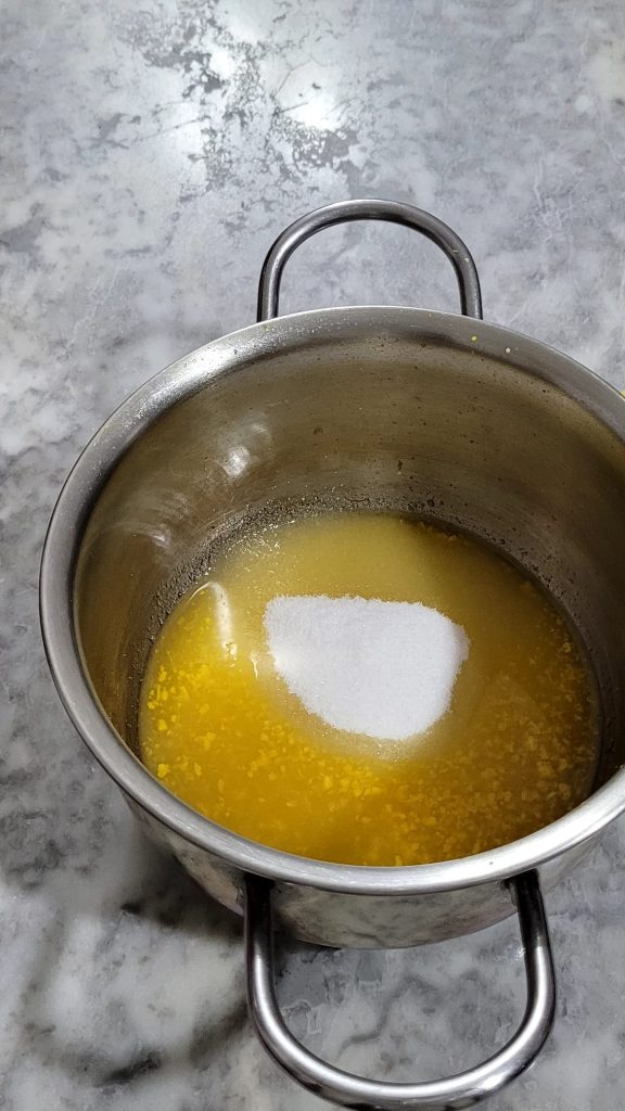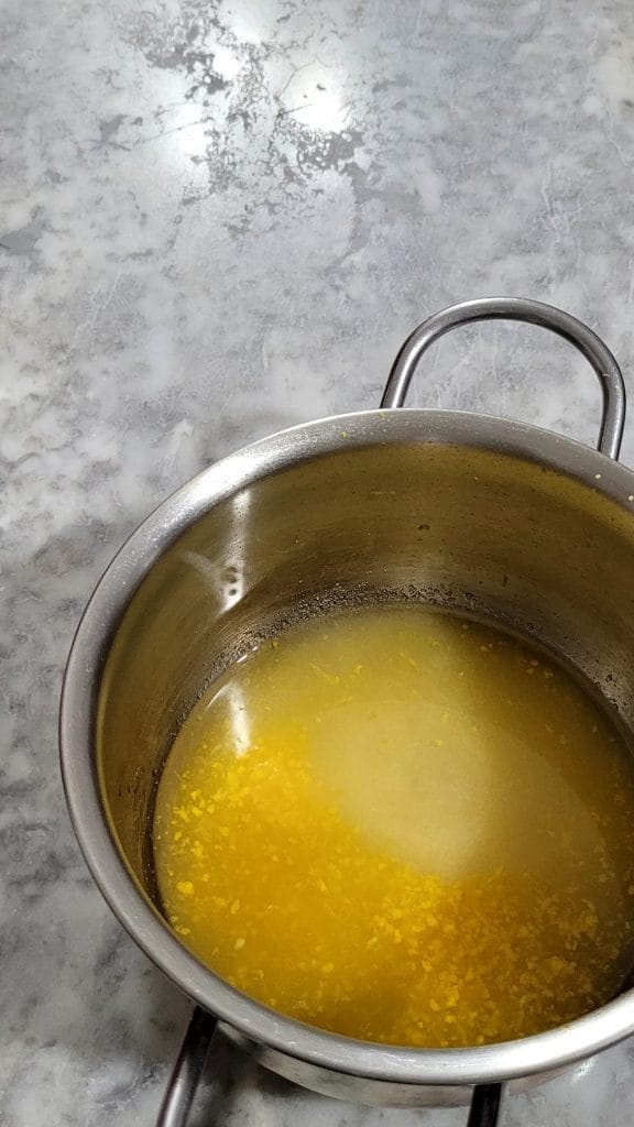 Pásate a la cocina y haz que llegue a ebullición mientras sigues mezclando con el batidor. Apaga el fuego y deja enfriar el jarabe obtenido