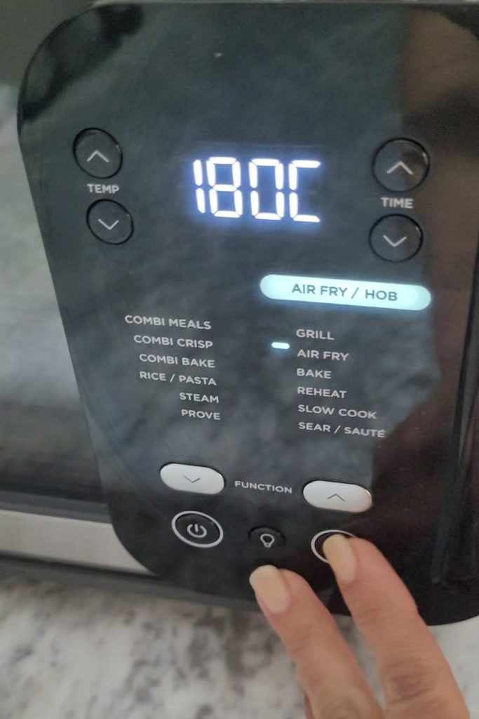 • Coloca la bandeja en la freidora y cocina con el programa de fritura al aire a 180° por 20/25 minutos, mezclando o agitando la bandeja 2/3 veces durante la cocción