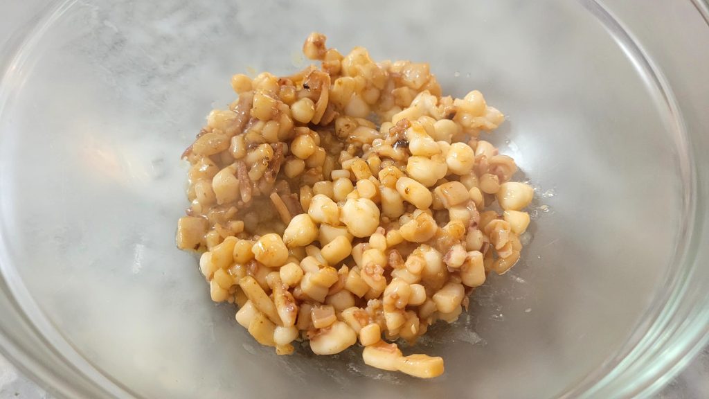 El relleno debe resultar suave pero consistente, los tentáculos picados se deben sazonar con una cocción rápida en sartén con aceite de oliva y ajo, luego mezclados con pan rallado, queso, perejil y aromas hasta obtener una mezcla homogénea. Puedes añadir un chorrito de aceite de oliva virgen extra para hacer el relleno más suave. Aromas frescos como perejil picado y si lo prefieres, ralladura de limón dan al plato un aroma irresistible.