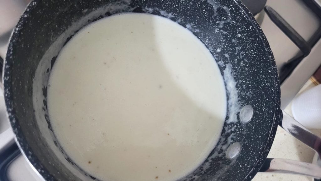 • Continúa hasta que la salsa comience a espesar. No añadas sal, el pecorino ya es suficientemente salado, solo la nuez moscada