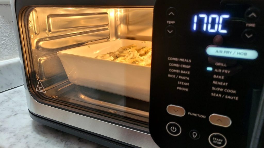 • Introduce la bandeja en la freidora y ajusta a 170° x 10 minutos. Sube a 200° y continúa x 3 minutos o hasta que se dore la superficie