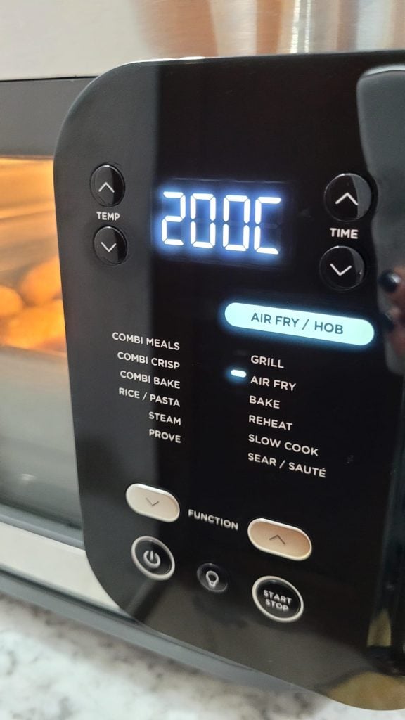 • Introduce el cajón o la bandeja y activa la cocción a 200° durante 12 minutos