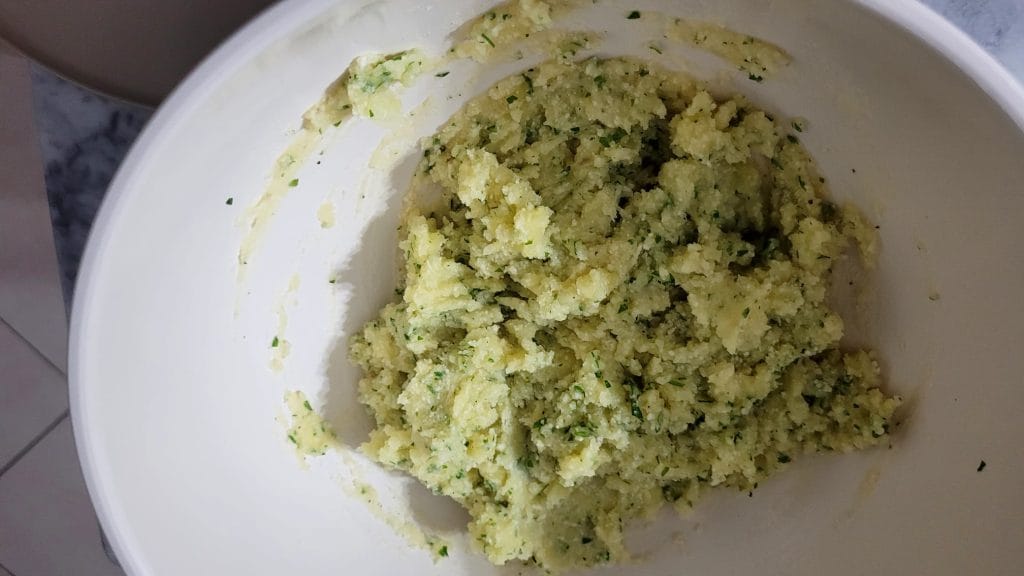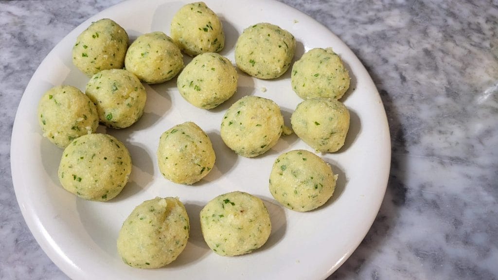 • Después de hervir o cocinar al vapor las patatas, aplástalas con un tenedor y déjalas enfriar durante 10 minutos. Una vez frías, puedes agregar el grana, el huevo, el perejil picado, la sal y la pimienta