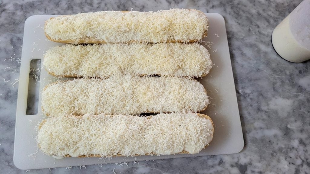 Usé 2 pequeñas baguettes precocidas, pero se puede reemplazar con pan blanco o incluso con pan sobrante del día anterior, tipo barra.
