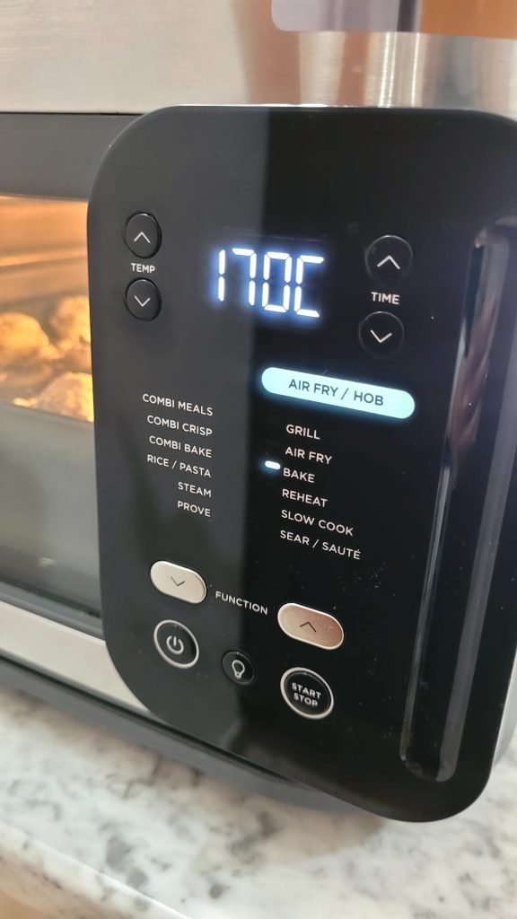 Precalienta la freidora a 170° x 2/3 minutos y hornea con el programa bake o air fry x 5 minutos