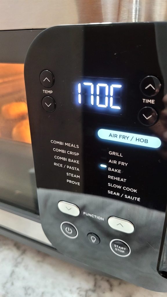 De este modo. Precalentad la freidora a 170° durante 2/3 minutos en el programa bake o air fry