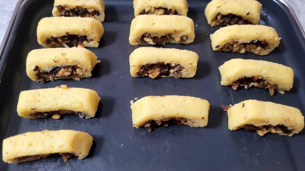 Estas galletas Rústicas en Freidora de Aire son súper buenas. La masa quebrada crujiente envuelve un delicioso relleno de nueces y piñones tostados, unidos con una cucharadita de miel a las pasas y el chocolate. Son perfectas como dulces al final de la comida e ideales también para estas próximas festividades. Para las Galletas Rústicas en Freidora de Aire se prevé un doble reposo en el refrigerador, primero de la masa quebrada y luego del rollo relleno, así que si no tienes mucho tiempo disponible, puedes preparar la masa quebrada también el día anterior conservándola, envuelta en papel film, siempre en el refrigerador. La mantequilla debe estar a temperatura ambiente, por lo que te aconsejo sacarla del refrigerador 20 minutos antes de la preparación de la masa quebrada.