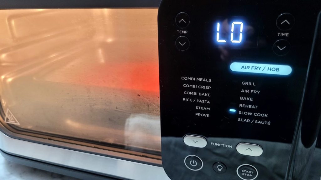Introducid la bandeja en la Ninja Combi y activad el programa Slow Cook bajando la temperatura a LO x 15 minutos