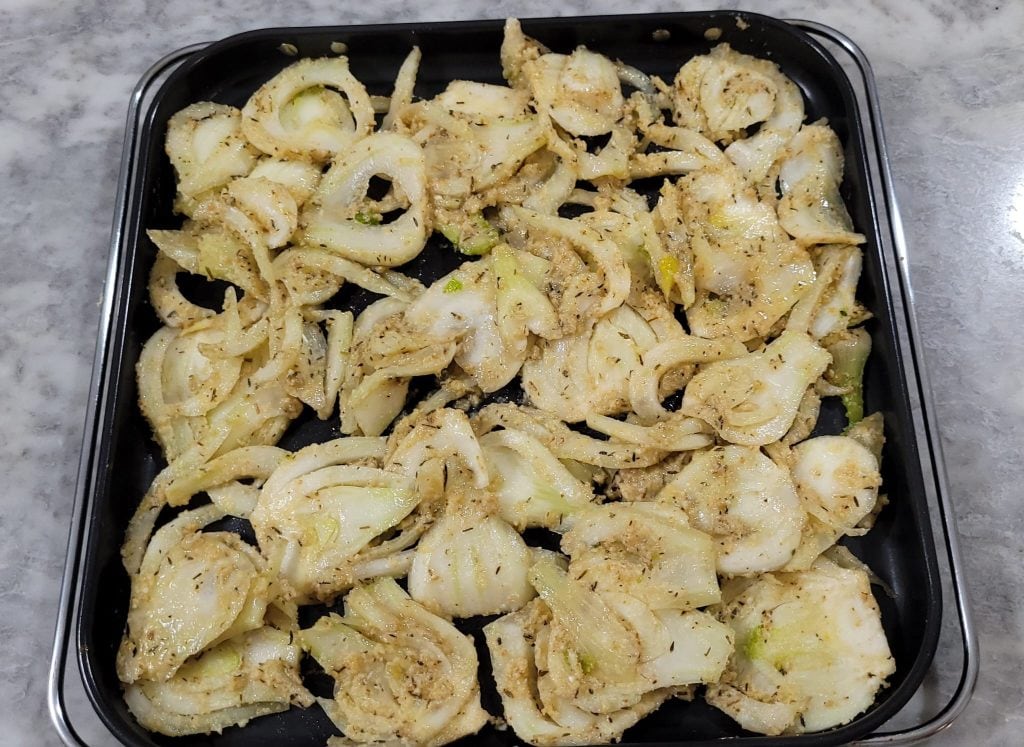 Transferirlos a una bandeja para insertar en la freidora, la mía es de 30×30. Si tenéis una freidora más pequeña, tendréis que hacer una doble cocción