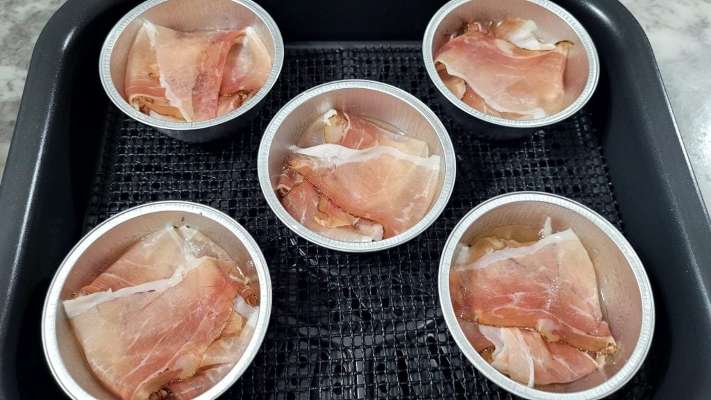 Cierra en paquete el speck y coloca los moldes sobre la rejilla de la Freidora