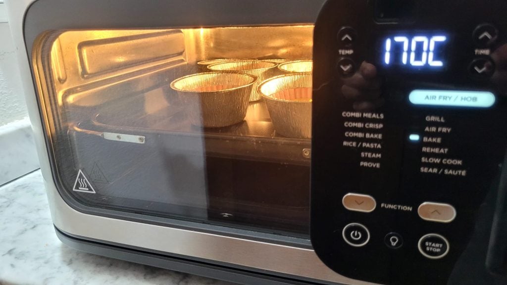 • Precalienta la freidora durante 2/3 minutos y cocina a 170º x 18 minutos, haz siempre la prueba del palillo, si sale completamente seco, los muffins están listos, de lo contrario, continúa por un par de minutos