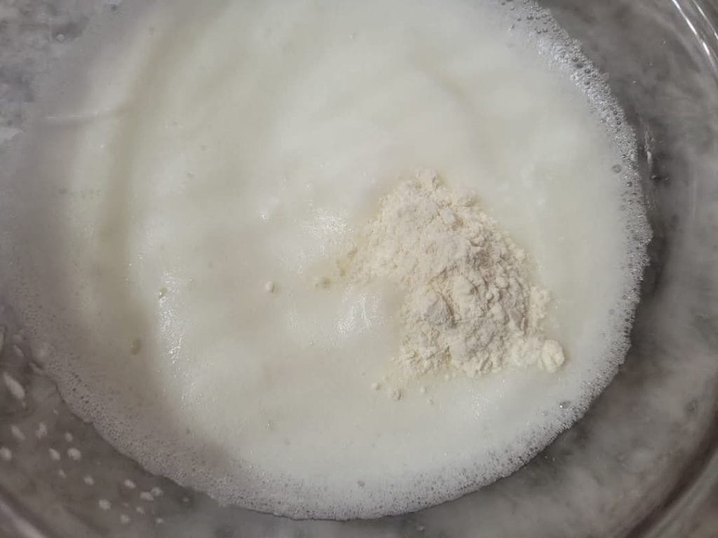 Cuando estén semi montadas, añada la harina y continúe hasta que estén bien firmes