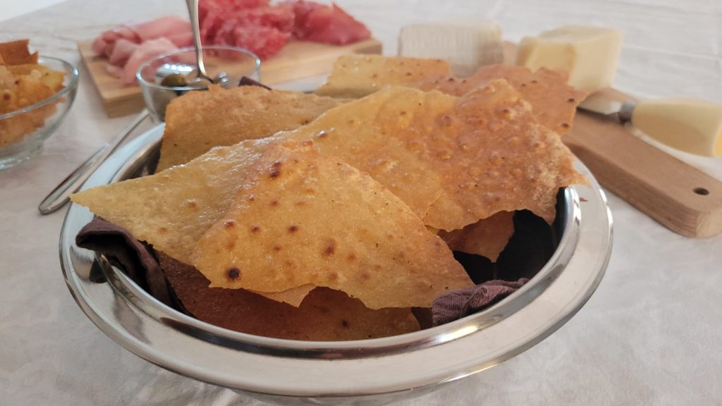 Este es el guttiau listo. Puedes servirlo en la mesa roto en trozos más grandes o en trozos más pequeños para el aperitivo o para un snack