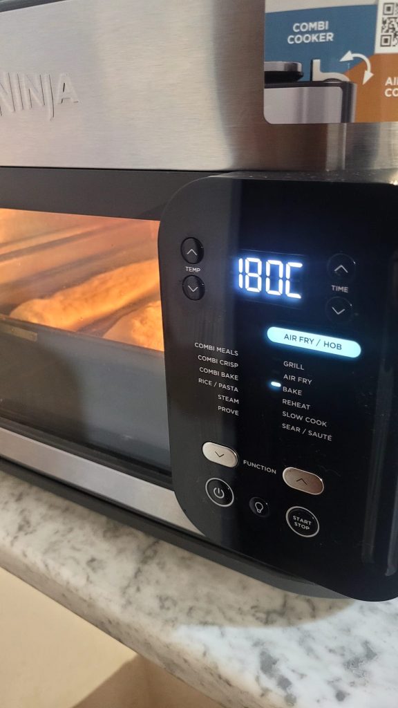 Precalienta durante 2/3 minutos programa bake o air fry y cocina a 180°C x 20 minutos