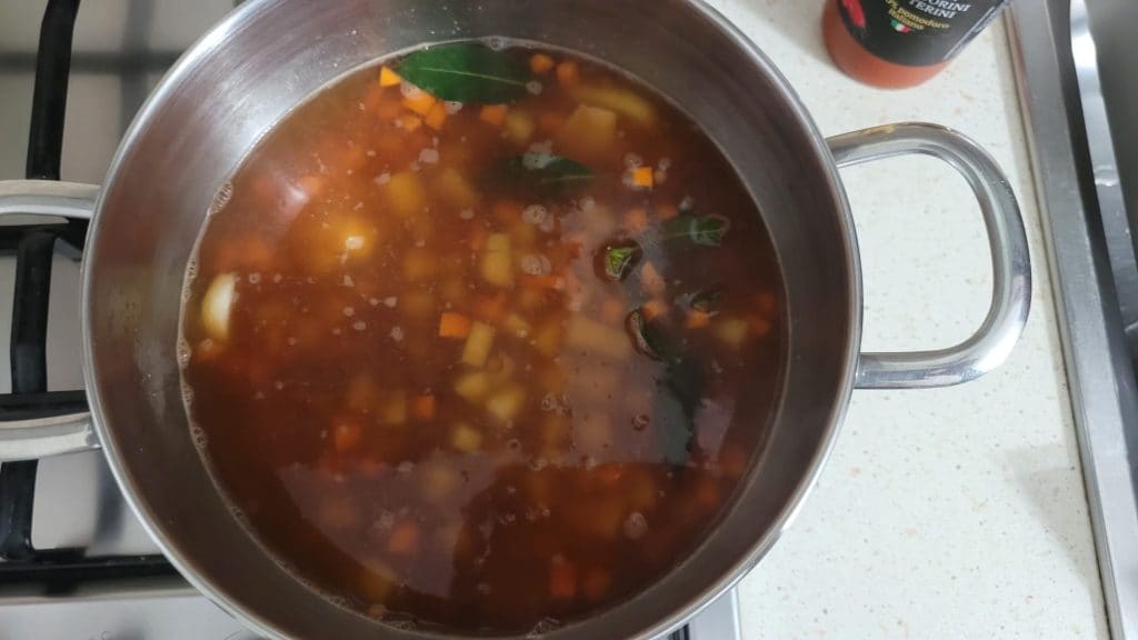 • Añade agua para cocinar la pasta, yo elegí lumaconi, pero también es perfecta con ditalini o pasta mixta. Cuando el agua hierva, vierte la pasta y sigue los tiempos de cocción indicados en el paquete. Si es necesario, añade un poco de agua, poco a poco y sin poner demasiada, de lo contrario corres el riesgo de tener un plato demasiado caldoso.