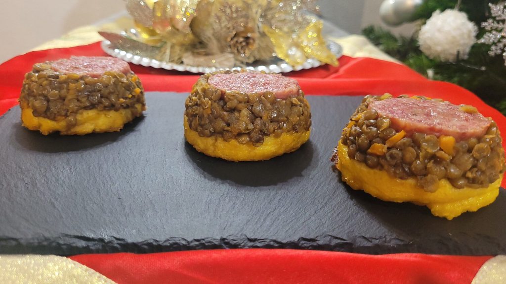 Aquí tenéis una idea muy chula para la noche de Nochevieja… el Pastel de Cotechino Lentejas y Polenta en Freidora de Aire, un plato que, como dicta la tradición, no puede faltar en nuestras mesas en la última noche del año.