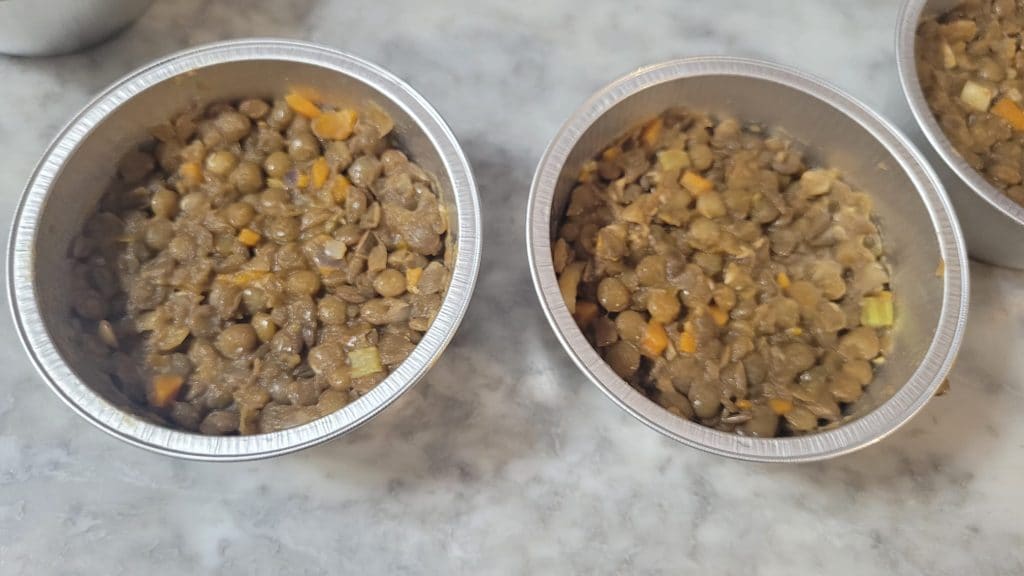 Agregad las lentejas y nivelad con el dorso de una cuchara. Dejad un espacio de unos 1,5 cm entre las lentejas y el borde del molde