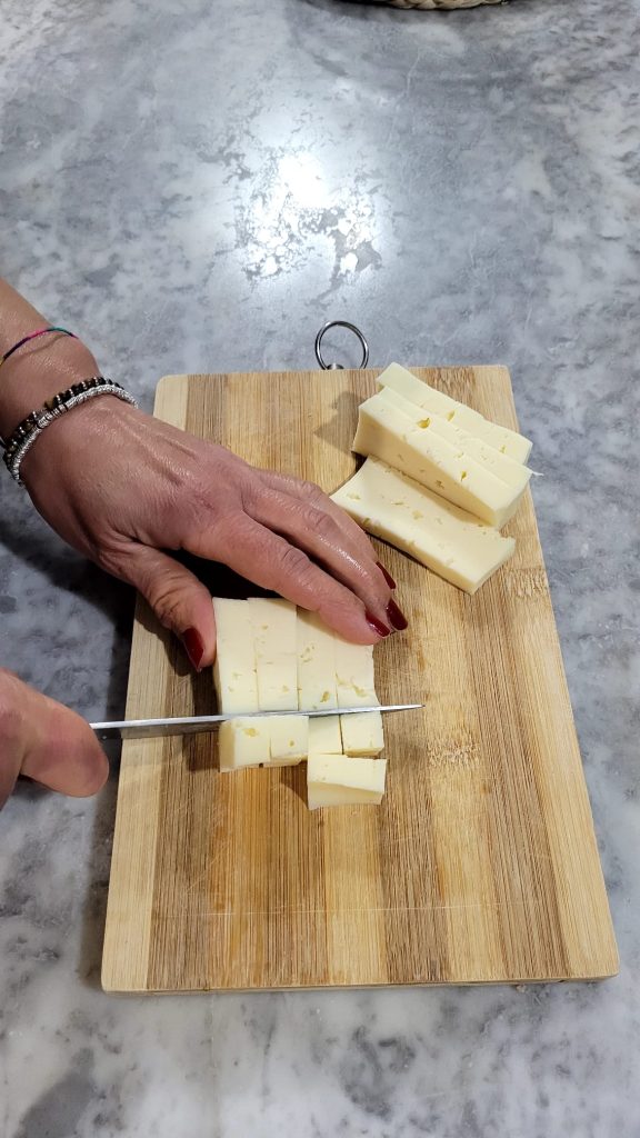 - 150 g queso blando de mesa (yo caciotta fresca)