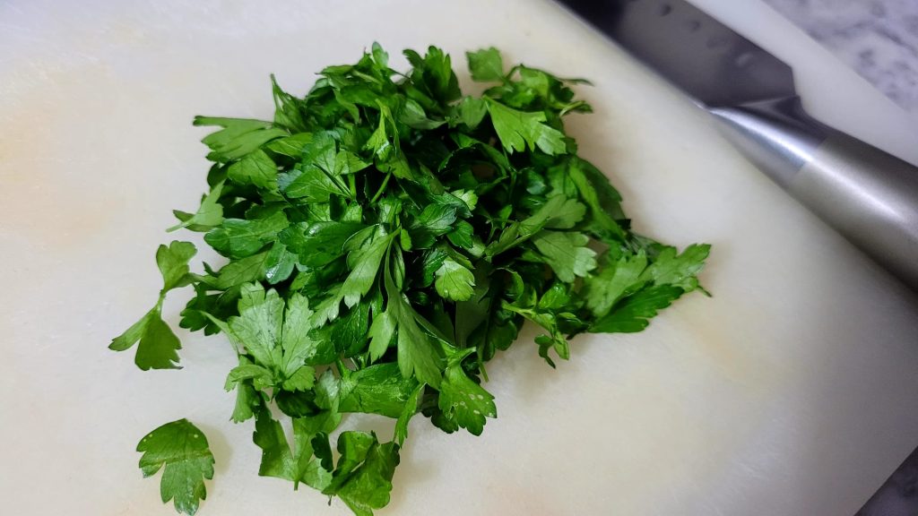 • Si queda demasiado líquido en la bandeja, coladlos con un colador y eliminad el ajo y los tallos de perejil