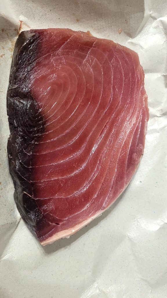 • Mientras tanto, retira la piel del trozo de atún y córtalo en cubos