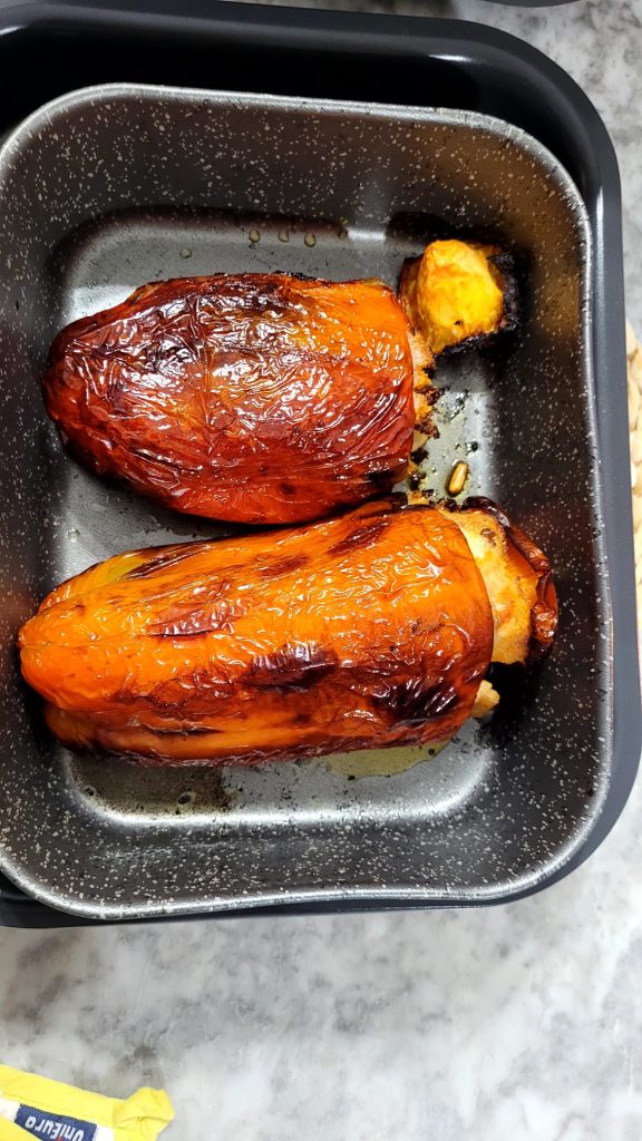 Si no tienes la freidora de aire, puedes cocinarlos también en horno tradicional. En el pasado incluso los preparaba en el microondas, obteniendo igualmente un buen resultado, aunque me costaba más quitarles la piel.