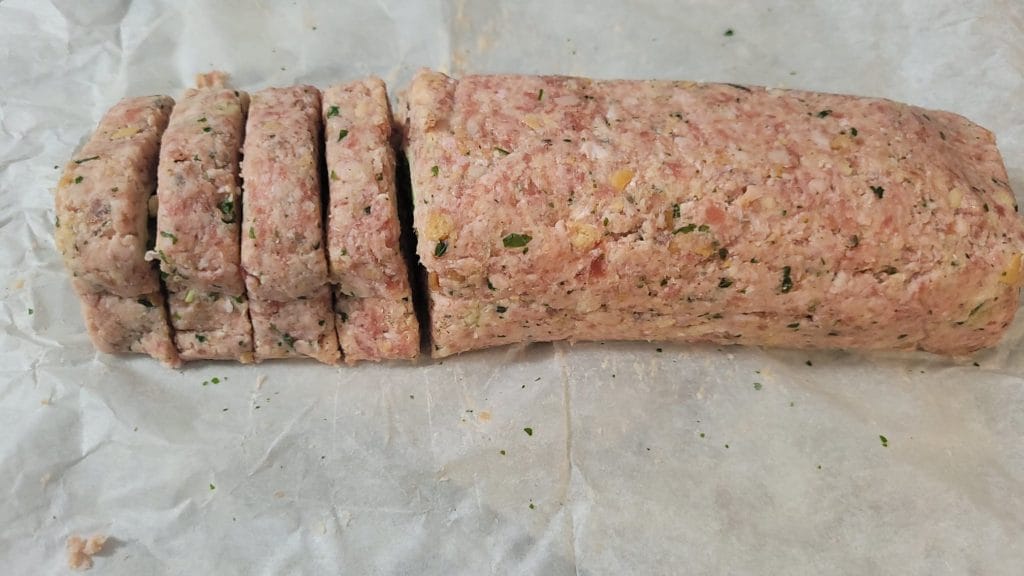 • Terminado el tiempo de reposo en el frigorífico o en el congelador, puedes cortar el pastel de carne en rodajas de aproximadamente 3 cm