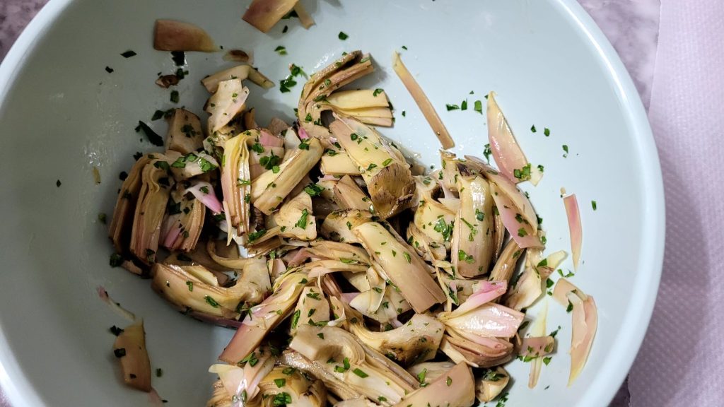 Comienza limpiando las alcachofas, quita las espinas y retira las hojas exteriores, las más duras