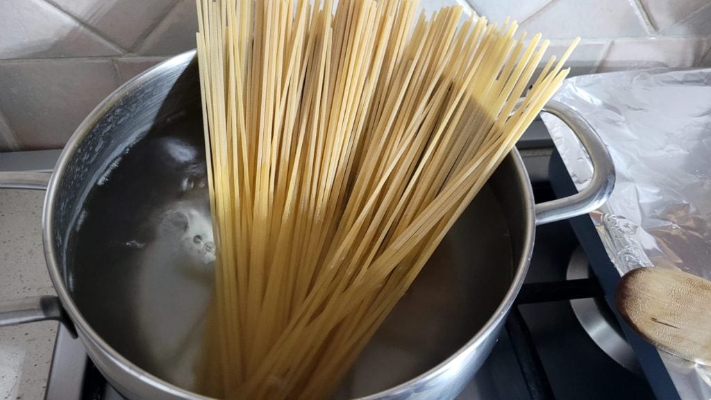 • Mientras tanto, prepares los spaghetti y reserve un poco de agua de cocción